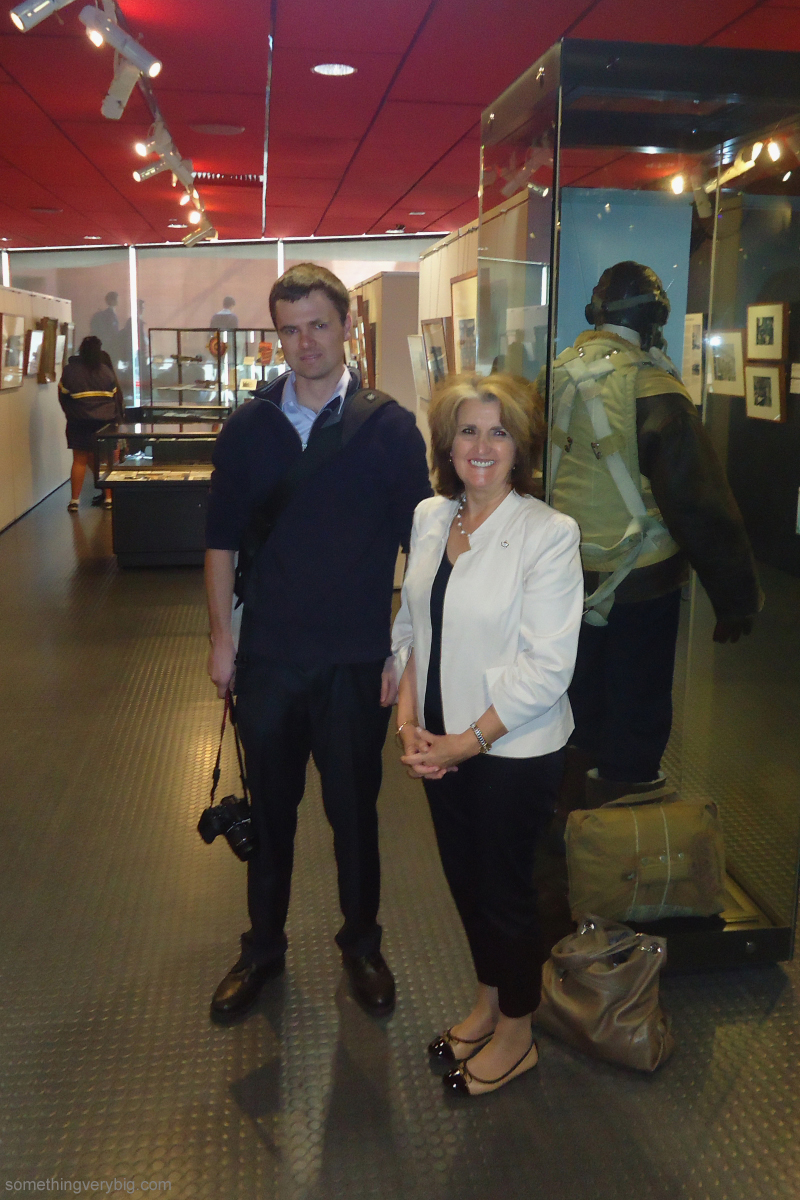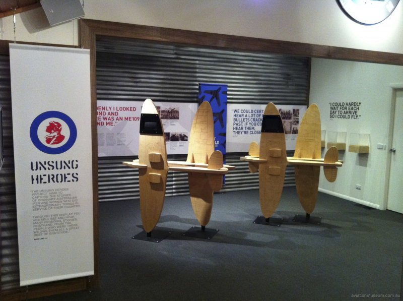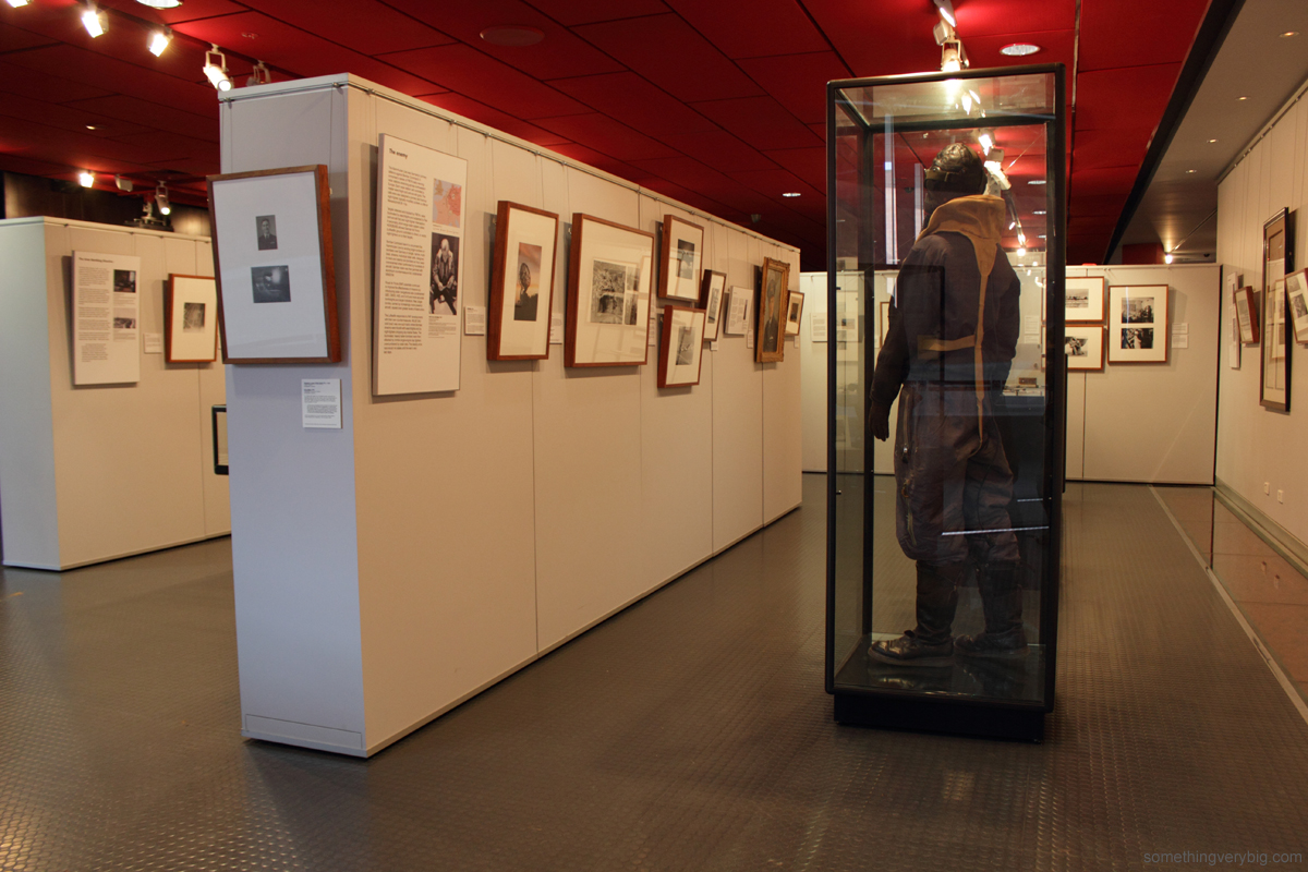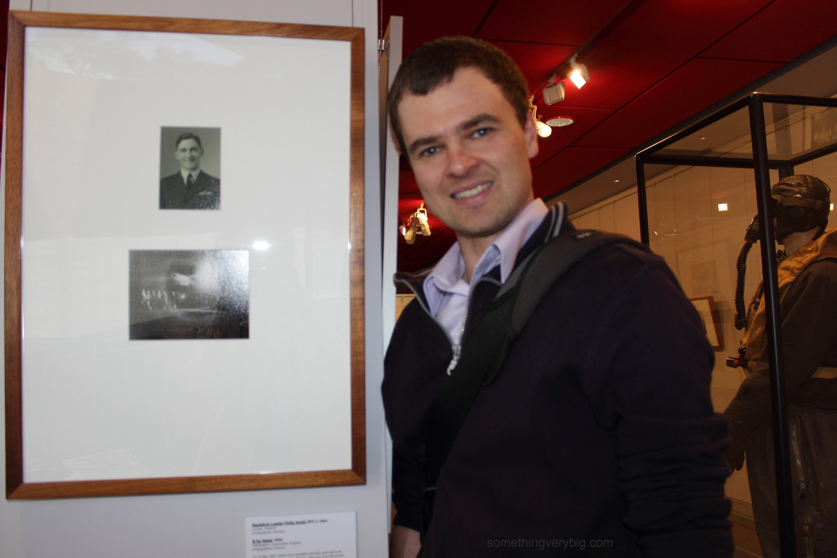 I suspect that if you hang around this exhibition for long enough you’ll see a fair number of Bomber Command veterans coming through for a look. And, happily, so it was when we visited. There was an older gent wearing a blazer and an Air Force tie looking at the mannequin in the photo above, talking to a middle-aged man about parachutes. Robyn recognised him as Gordon Laidlaw, a 50 Squadron pilot who she has been in touch with before, and talking to his mate later I discovered that they had come up from Mornington, an hour or so south of Melbourne, especially to have a look at the exhibition. It was great to chat briefly with Gordon. He was also talking to another pair of visitors who were in Melbourne on holidays from Perth who had come to the Shrine to see the exhibition: