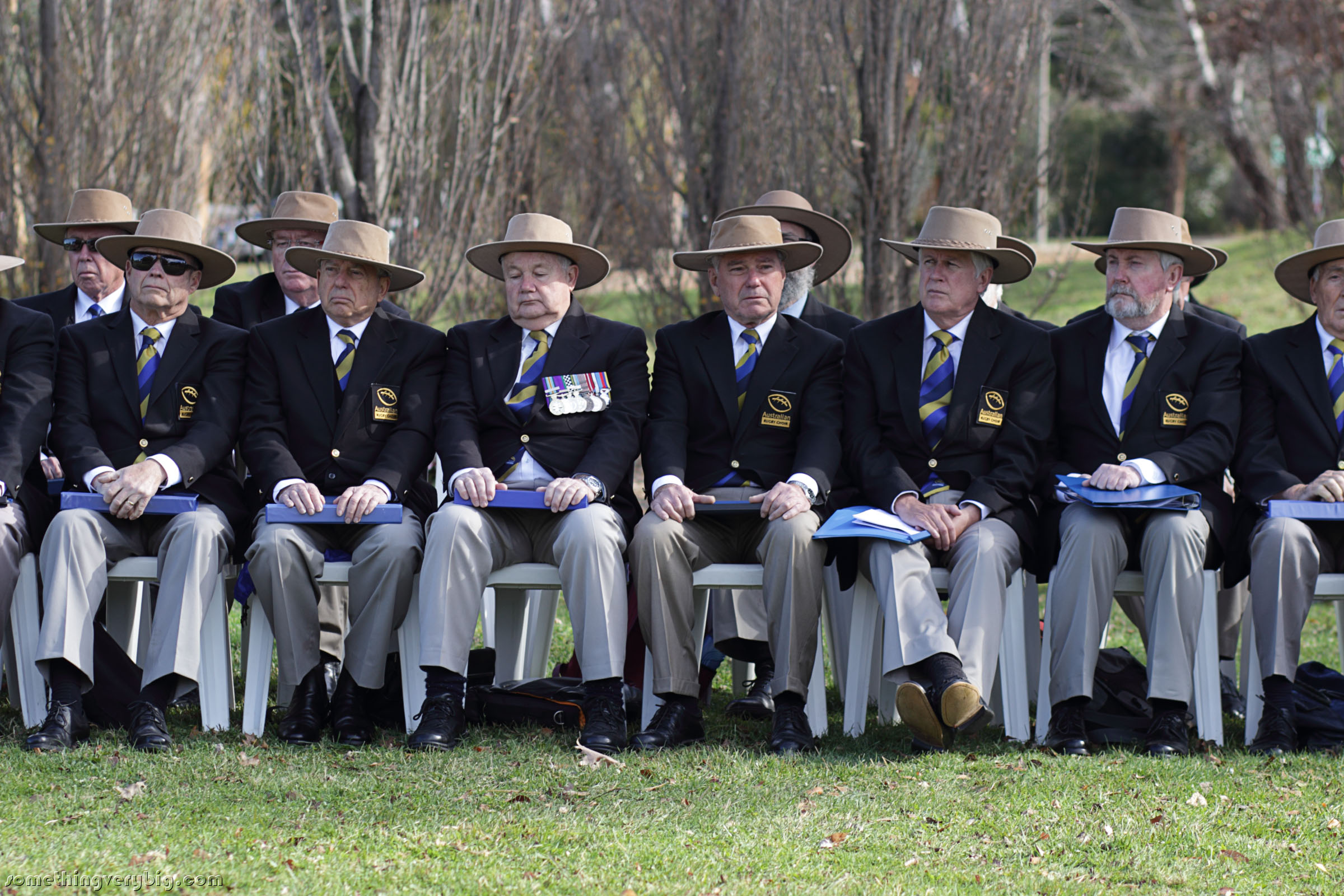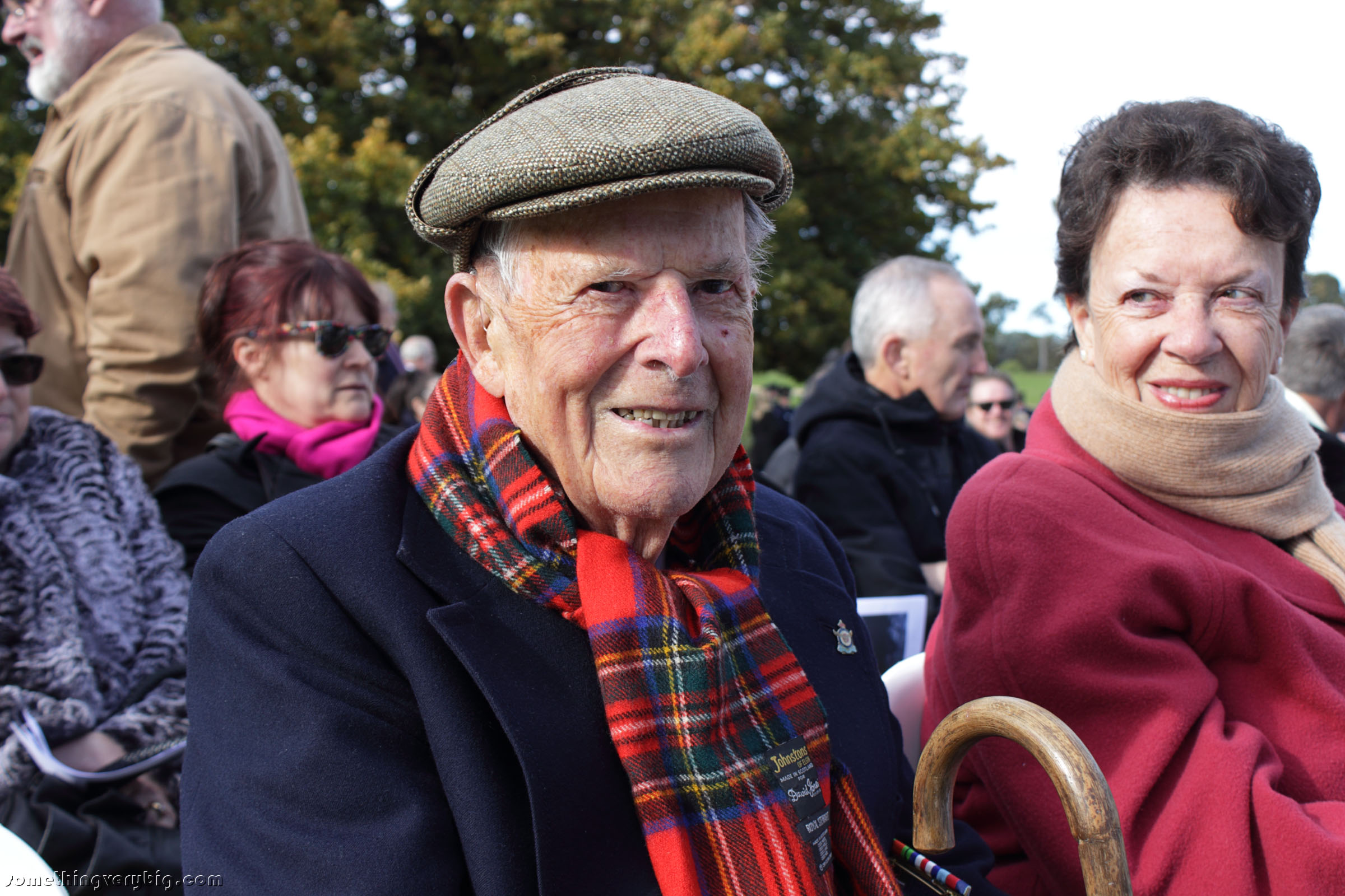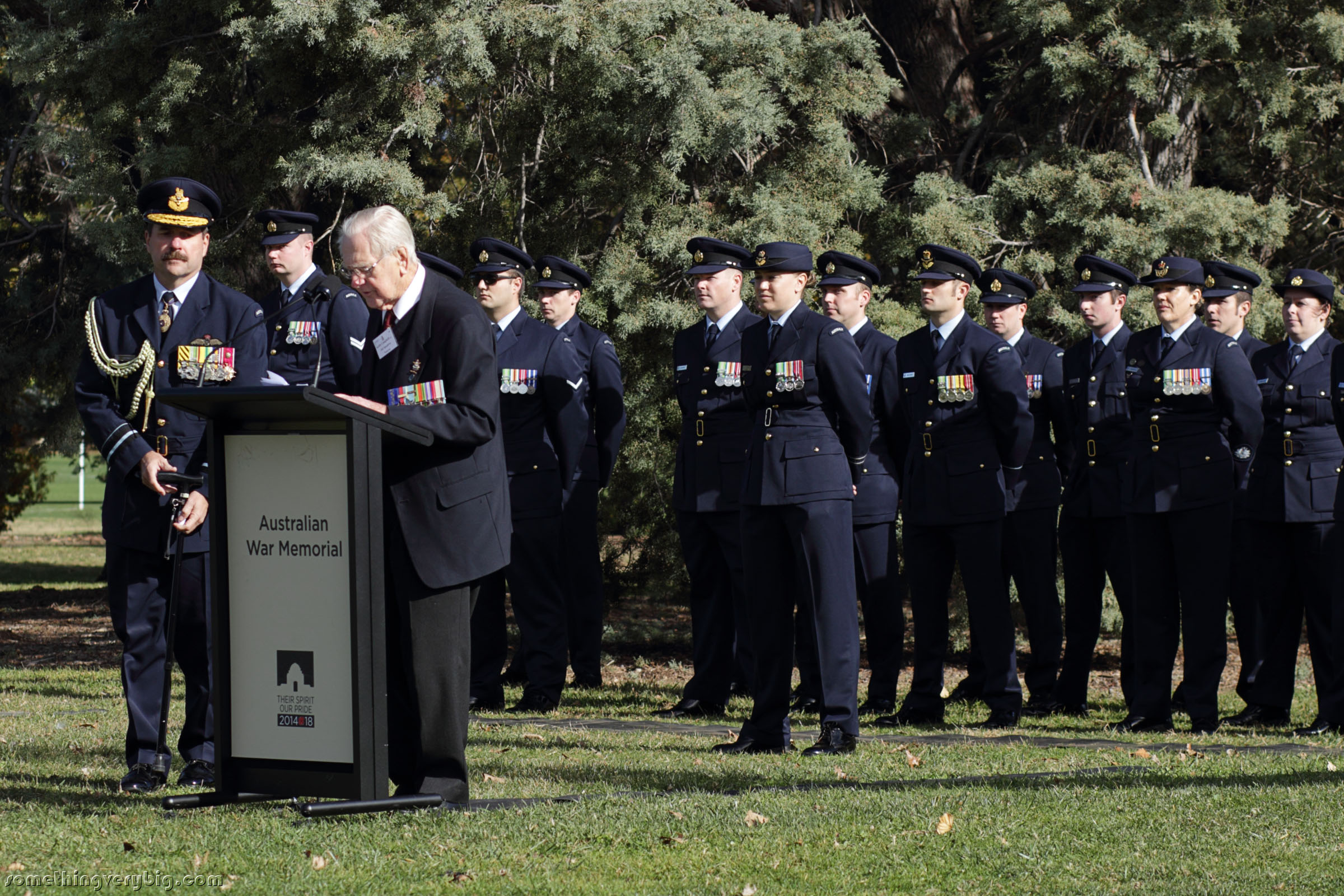 I’m told there were 600 seats provided, and they were all full well before the ceremony kicked off at 11:00, with other people standing around the periphery. Sitting behind me was Tom Stewart, a Canberra local who was a 77 Squadron (Royal Air Force, not the Australian fighter squadron!) wireless operator. I snapped a quick photo before the ceremony started: