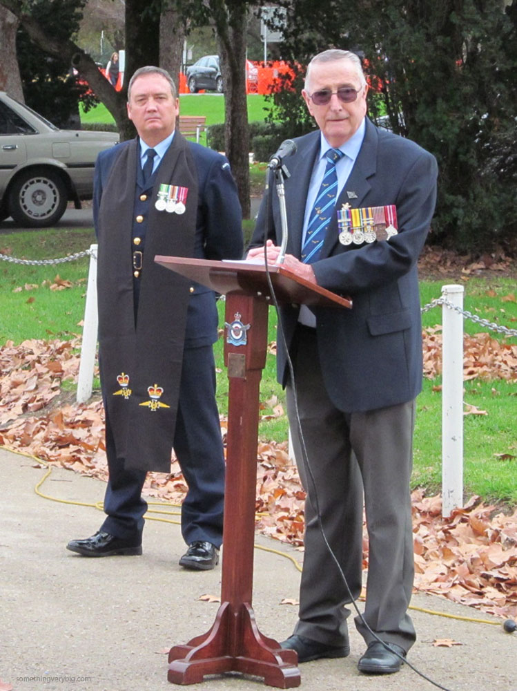 The ceremony was held at the Air Force Memorial at the Torrens Parade Ground, just north of the centre of the city. Some 70 people were present, including the Hon Martin Hamilton-Smith, the South Australian Minister for Veterans Affairs. The following photos by Arthur Jeeves were sent to me by Dave Helman, President of the Royal Australian Air Force Association (South Australia), who was one of the organisers.