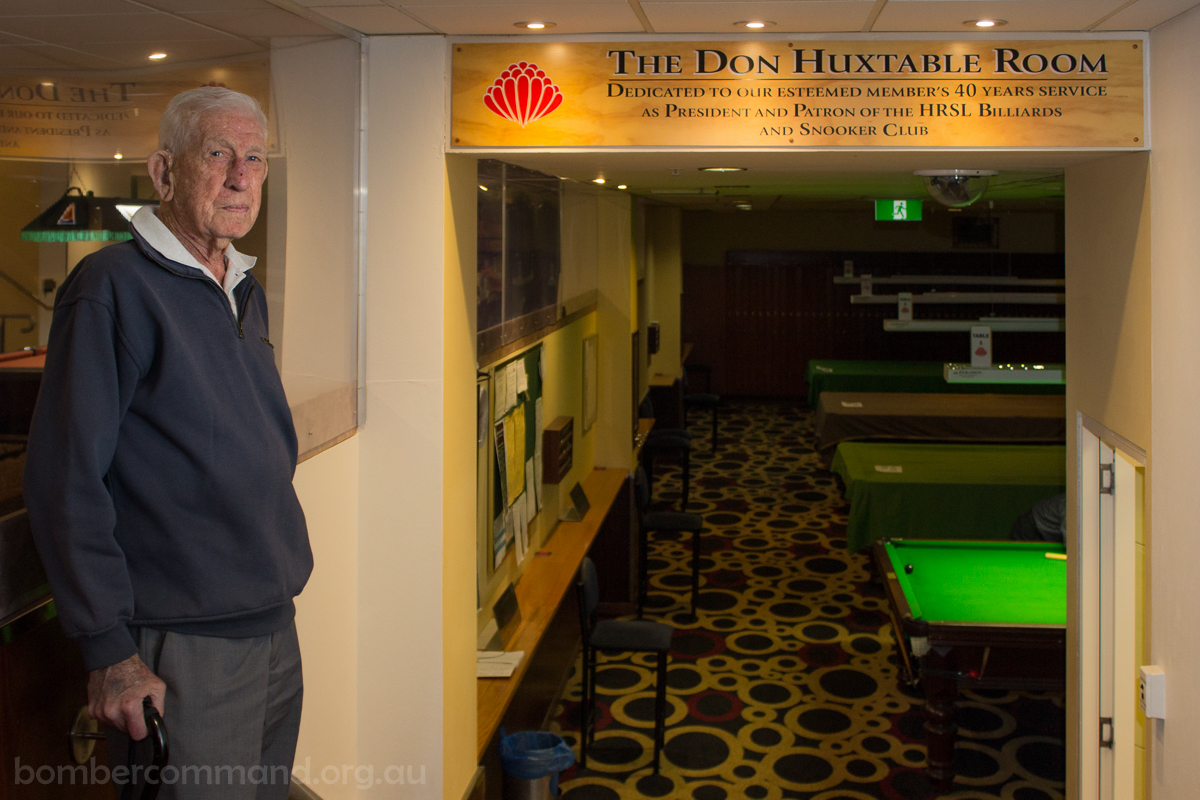 He was very proud of his crew, four of whom after the war bought adjacent blocks of land in Hornsby and then helped each other build their houses on them. In later years Hux, perhaps always feeling the captain’s sense of responsibility for his crew, was always looking out for Mary Fallon, wife of his late mid-upper gunner Brian, and was very close to Mary’s grandson Bryan. After the war Hux worked in the meat trade and became such a respected member of his beloved Hornsby RSL that they went and named a room after him.